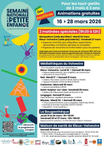 Du 16 au 28 mars, dans le cadre de "La semaine petite enfance", aménagement d'un espace dédié aux enfants de moins de 3 ans avec :