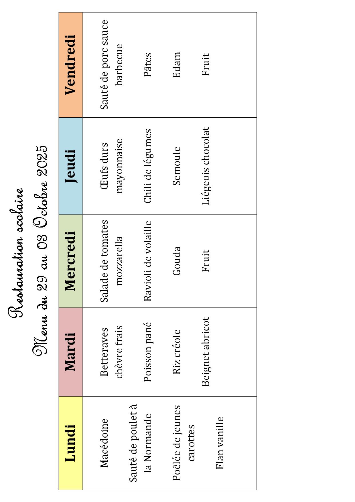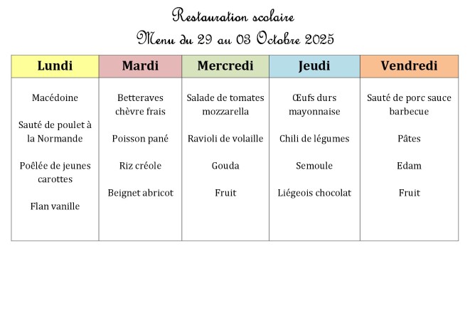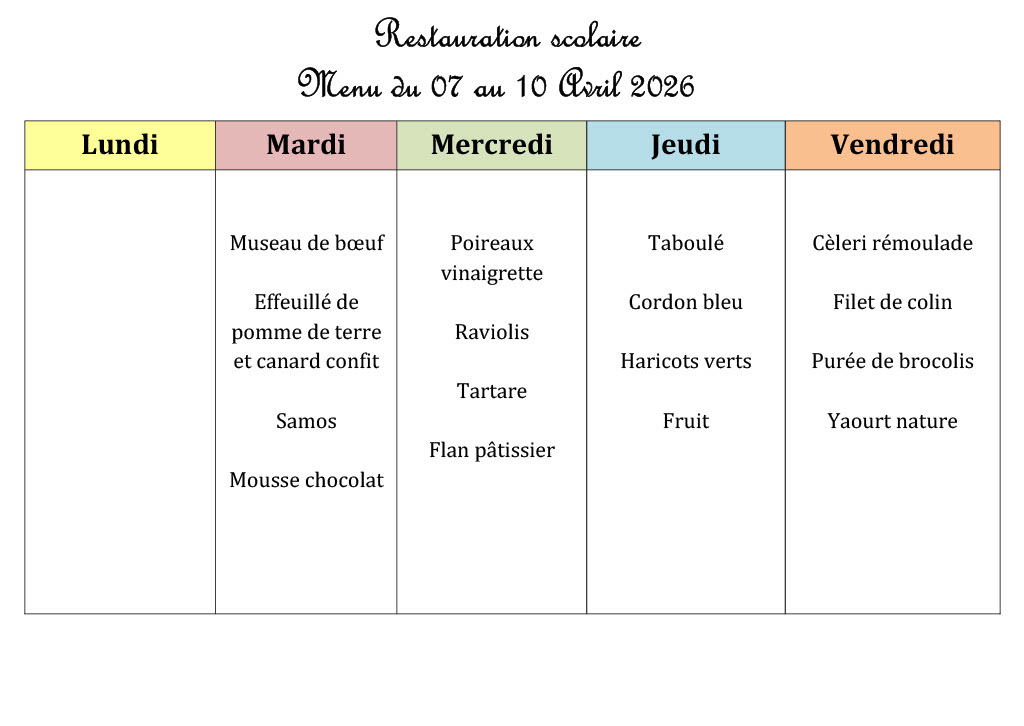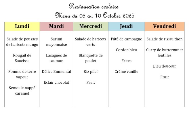 Menu de la cantine
